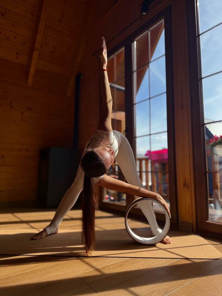 Jógový kruh neboli Yoga wheel je skvělá víceúčelová pomůcka, která vám posílí svaly, zvýší flexibilitu i uvolní páteř. Tento kruh vám bude oporou při cvičení či protahování a využijete ho i jako masážní pomůcku po dlouhém dni v práci. Pomůže vám prohloubit vaše záklony nebo s ním můžete vymýšlet různé akrobatické kousky. Povrch kruhu je z korku, který je měkký a navíc ekologický.